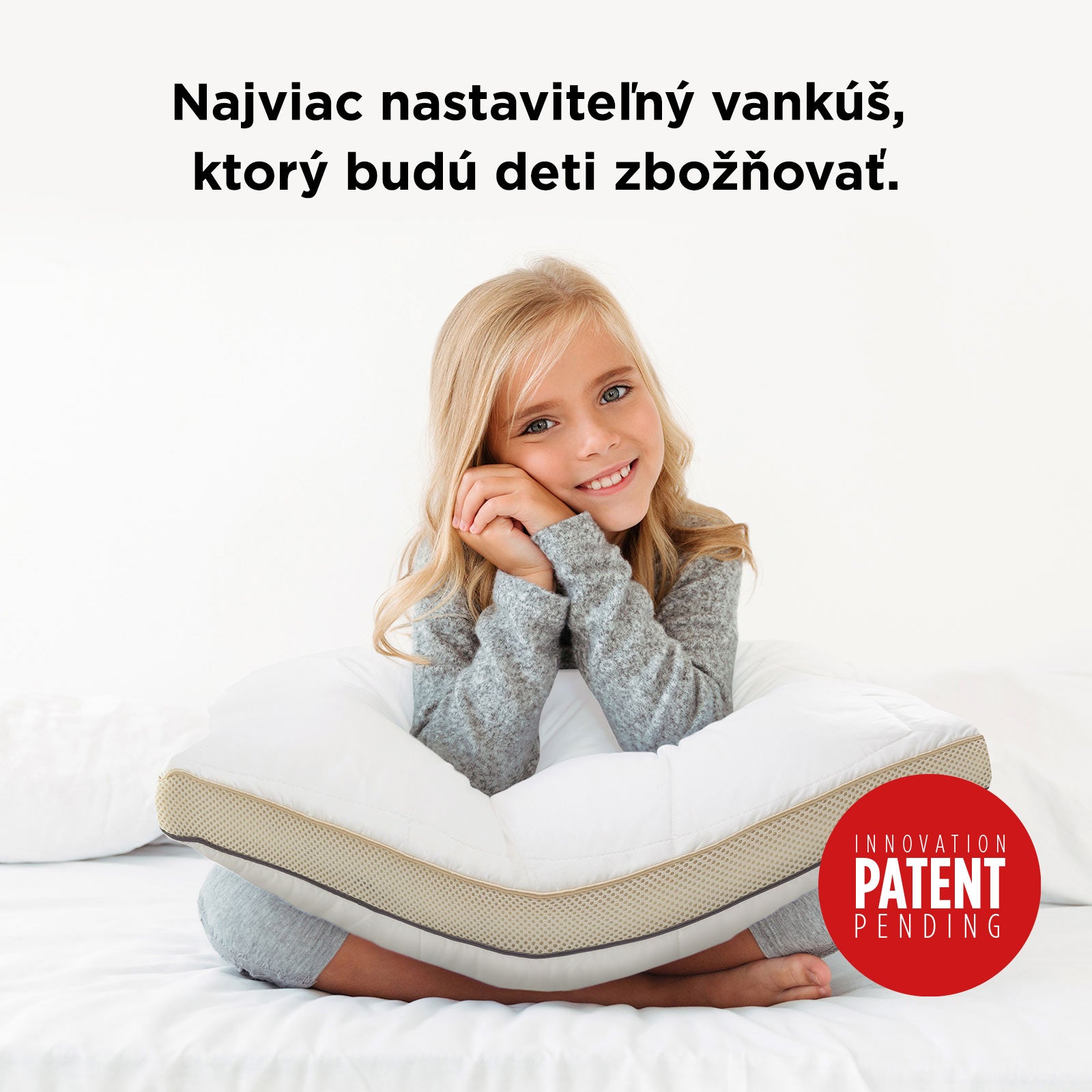 - Vankúš je individuálne nastaviteľný (výška a pevnosť), vďaka čomu je vhodný pre deti už od 3 rokov.