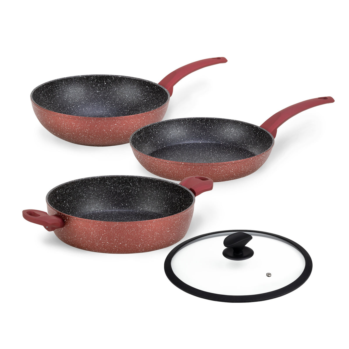 - Súprava obsahuje: 1 x panvica (28 cm), 1 x wok (28 cm), 1 x panvica s dvoma rukoväťami (28 cm), 1 x sklenená pokrievka (28 cm).