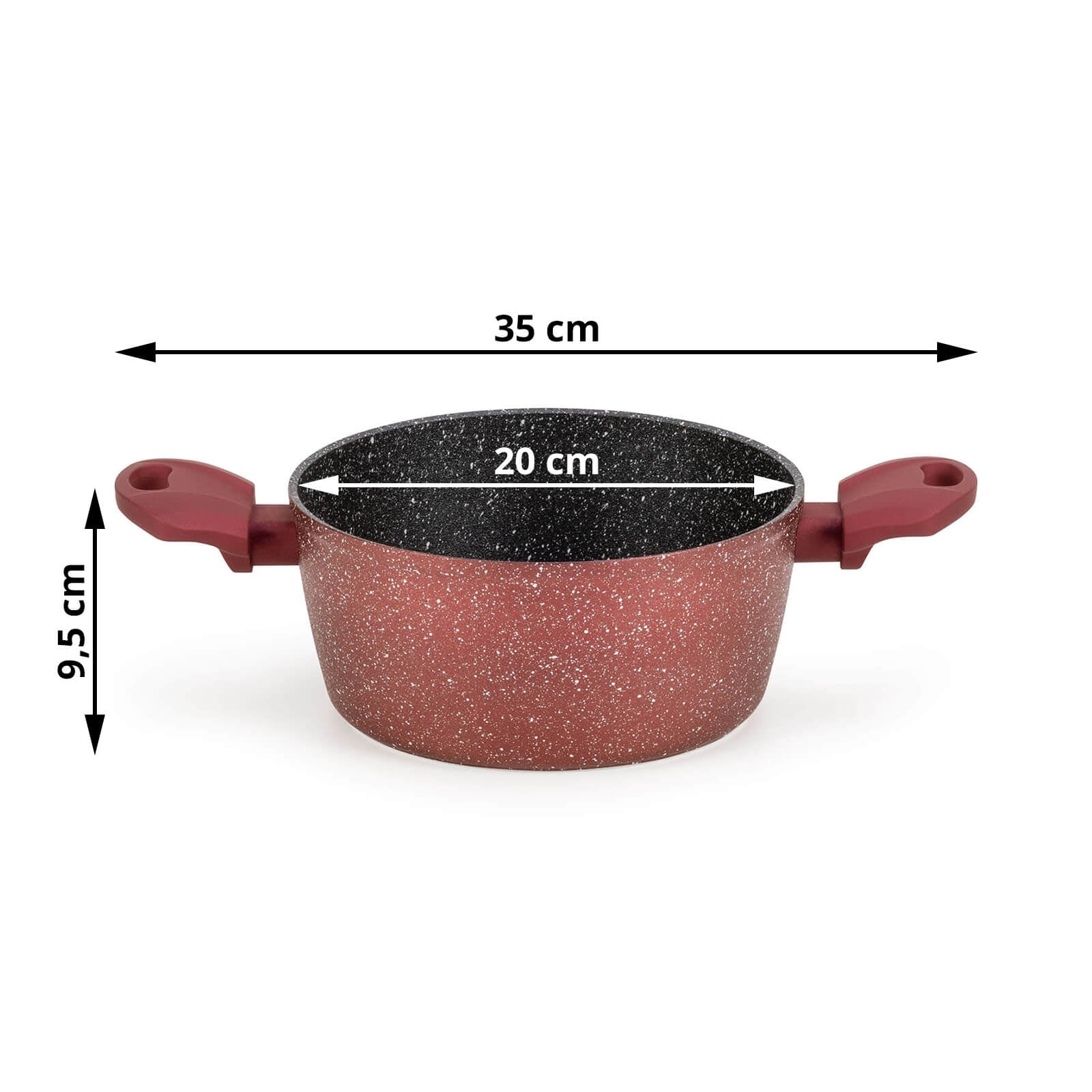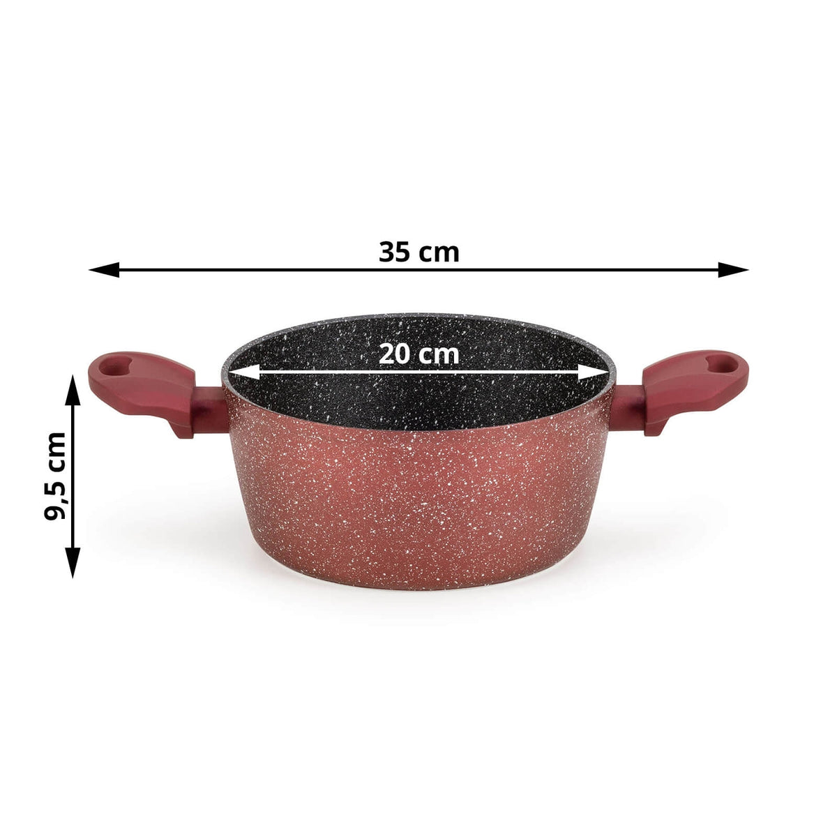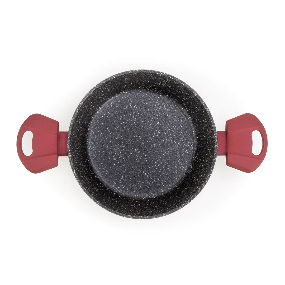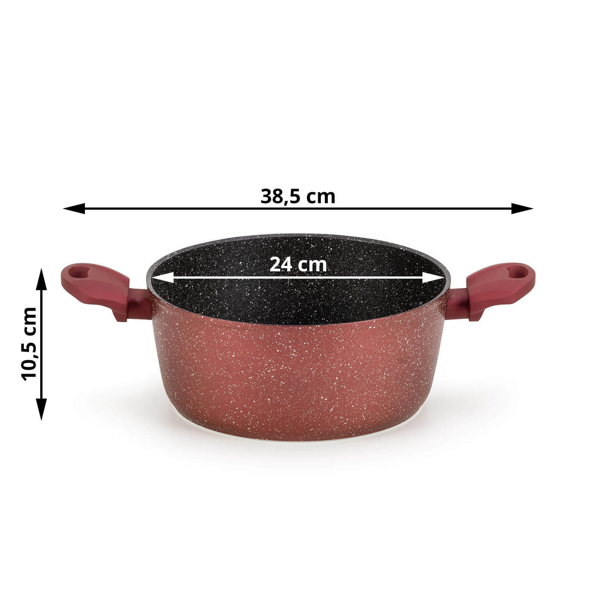 Rosmarino Lava Stone Grape je prémiový kuchynské riad s inovatívnym a technologicky unikátnym hrubým minerálnym povrchom. Nepriľnavý povrch s vzhľadom sopečnej horniny umožňuje prirodzené varenie s minimom tuku. Takto sa zachovajú všetky dôležité vitamíny a minerály, ktoré naše telo potrebuje pre zdravý životný štýl. Vhodné na všetky typy varných dosiek, vrátane indukcie. Vďaka nepriľnavému povrchu na vnútornej aj vonkajšej strane je údržba a čistenie v umývačke riadu ešte jednoduchšie. Všetky produkty zo série Lava Stone Grape sú založené na viacvrstvovej konštrukcii, ktorá zabezpečuje dlhú životnosť, vysokú odolnosť a trvácnosť.