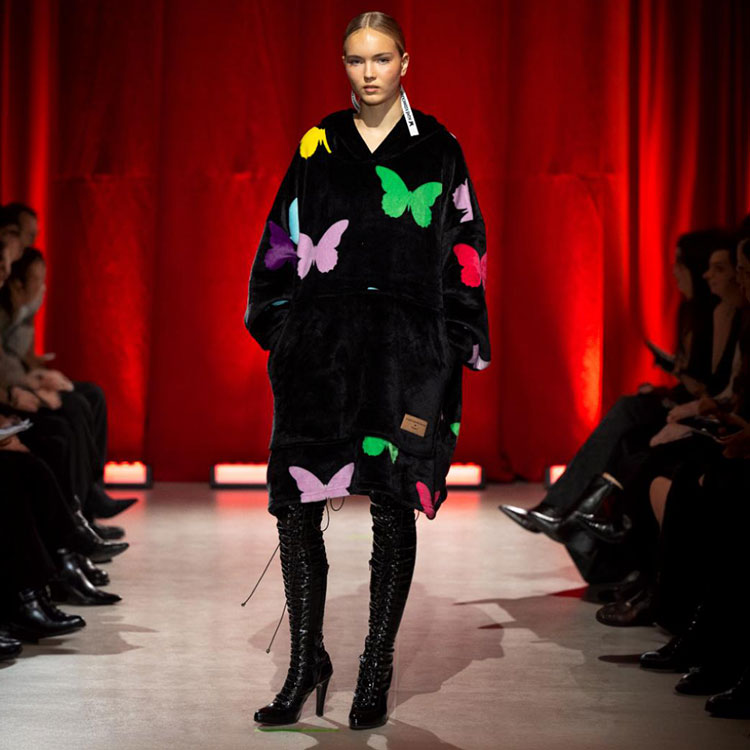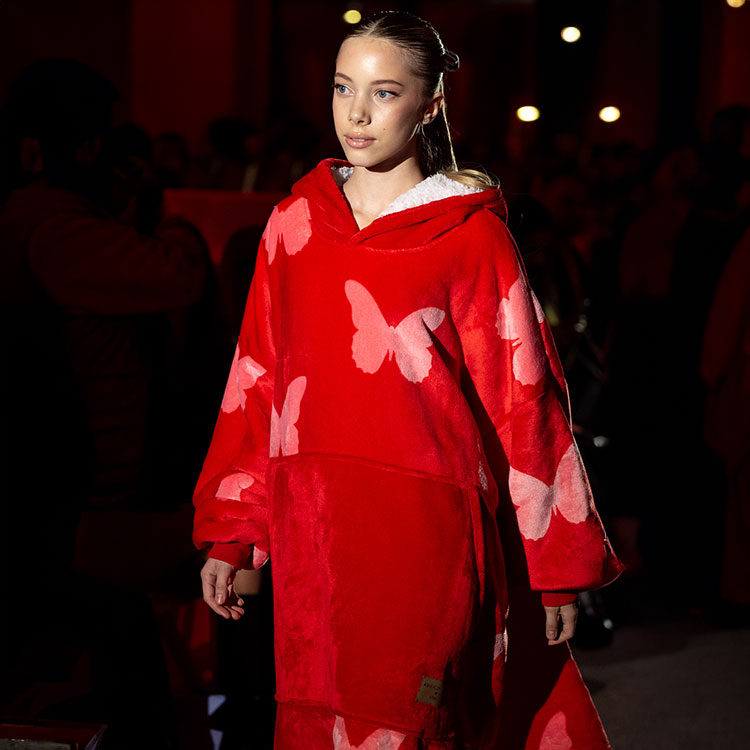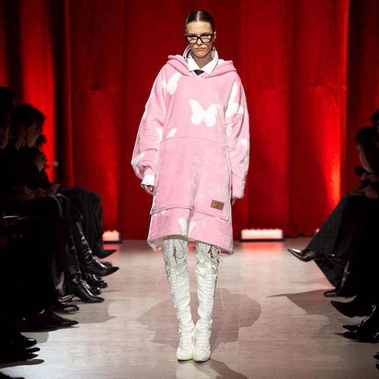 Táto mikinová deka s kapucňou a rukávmi, vytvorená v spolupráci s jednou z najuznávanejších litovských módnych návrhárok, Agnė Kuzmickaitė, spája pohodlie a vysokú módu. Jej charakteristický, hravý štýl a zmysel pre funkčnú eleganciu premenili bežný predmet na skutočný módny doplnok – pre každého, kto si chce užiť pohodlie domova s nádychom prestíže.
