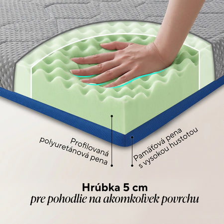 - Hrúbka 5 cm pre pohodlný spánok na všetkých povrchoch
