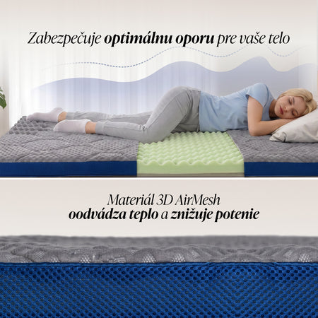 - Hrúbka 5 cm – zlepšuje spánok na akomkoľvek povrchu