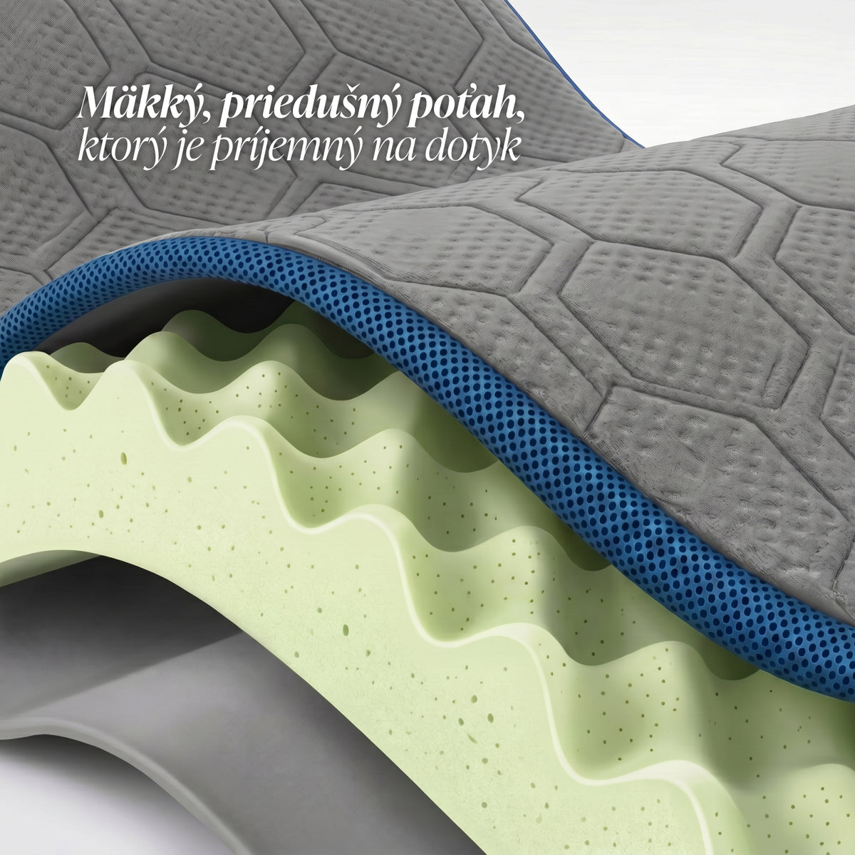 - Mäkká pamäťová pena sa nepretržite prispôsobuje polohe tela a poskytuje dodatočný komfort počas spánku