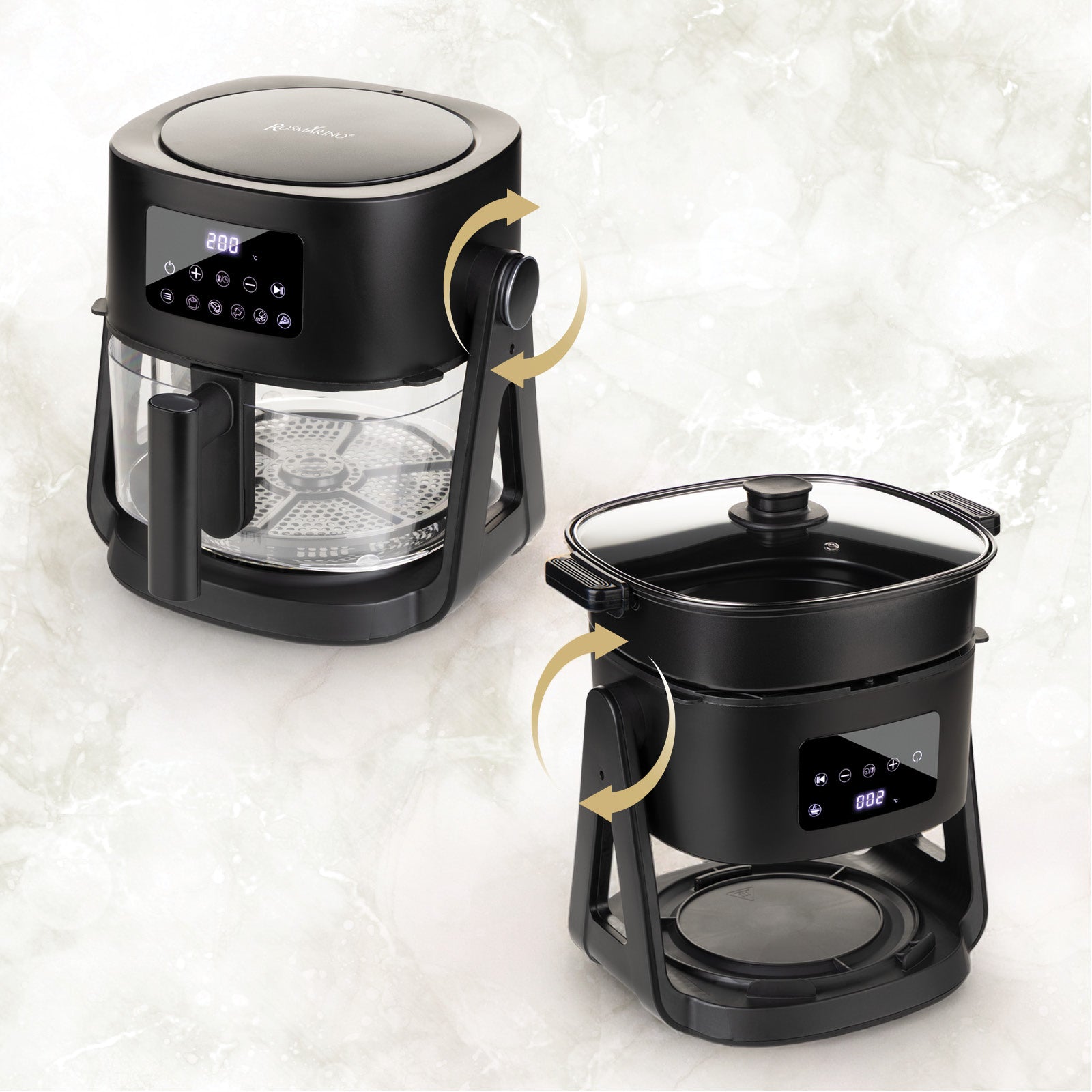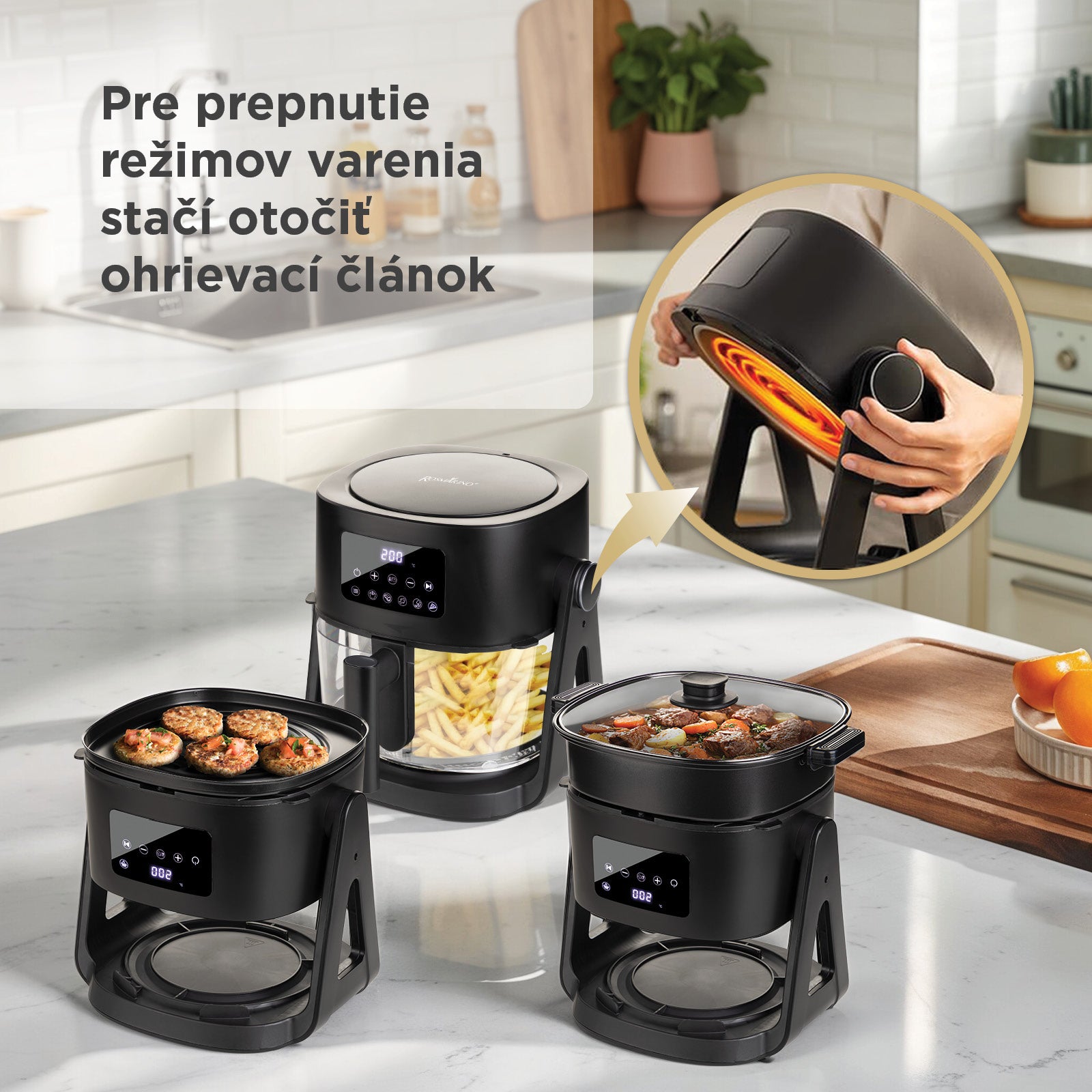 - Revolučný dizajn s otočnou vyhrievacou jednotkou – prepnite z fritézy na gril alebo hrniec za pár sekúnd!