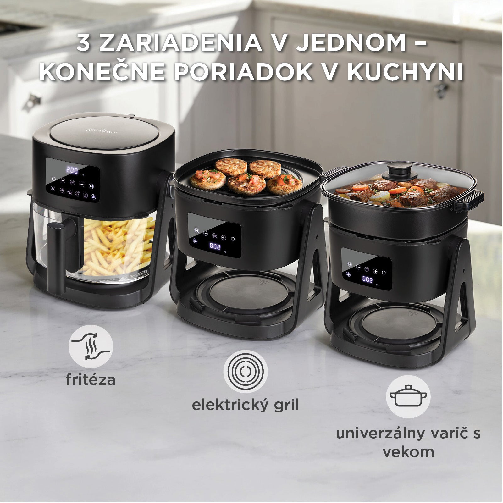 - Multifunkčné zariadenie: teplovzdušná fritéza, gril a hrniec v jednom.