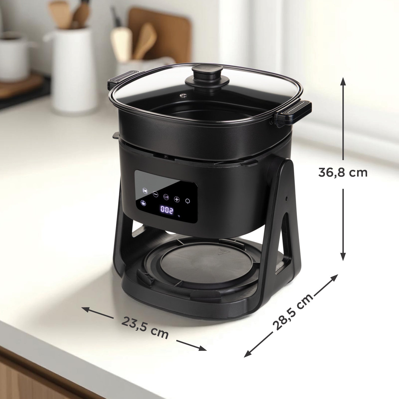 Vyberte si z 5 prednastavených programov alebo manuálne nastavte teplotu a čas varenia. Intuitívne dotykové ovládanie sa ľahko používa a zariadenie je úplne bezpečné, pretože prístroj aj rukoväte zostávajú počas prevádzky chladné na dotyk..