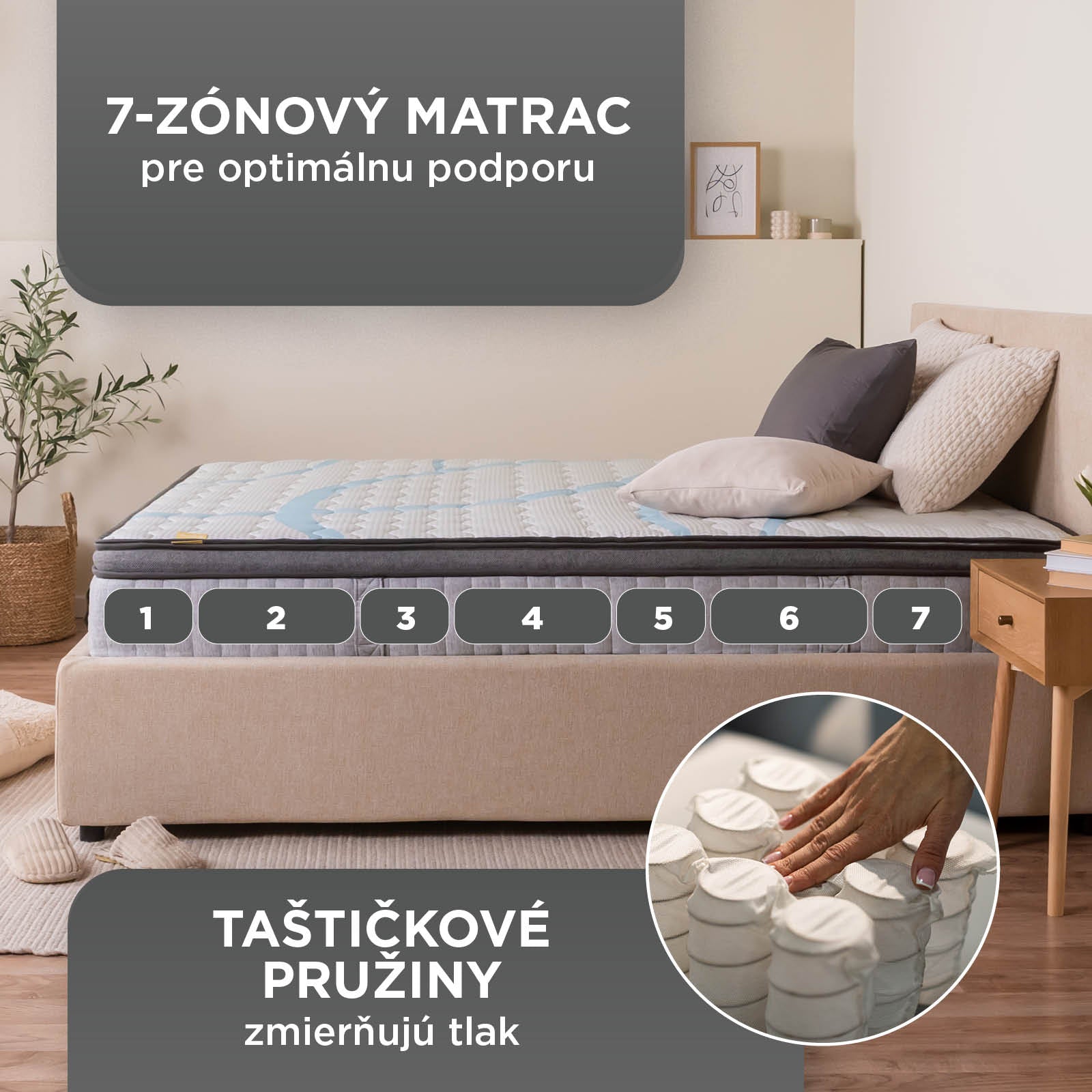 Kvalitné pružiny a 7 zón pre pohodlný spánok v každej polohe.