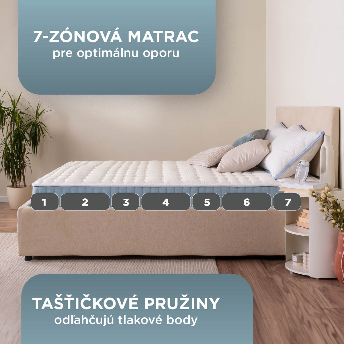 - 7-zónové taštičkové jadro poskytuje cielenú podporu po celej dĺžke tela.