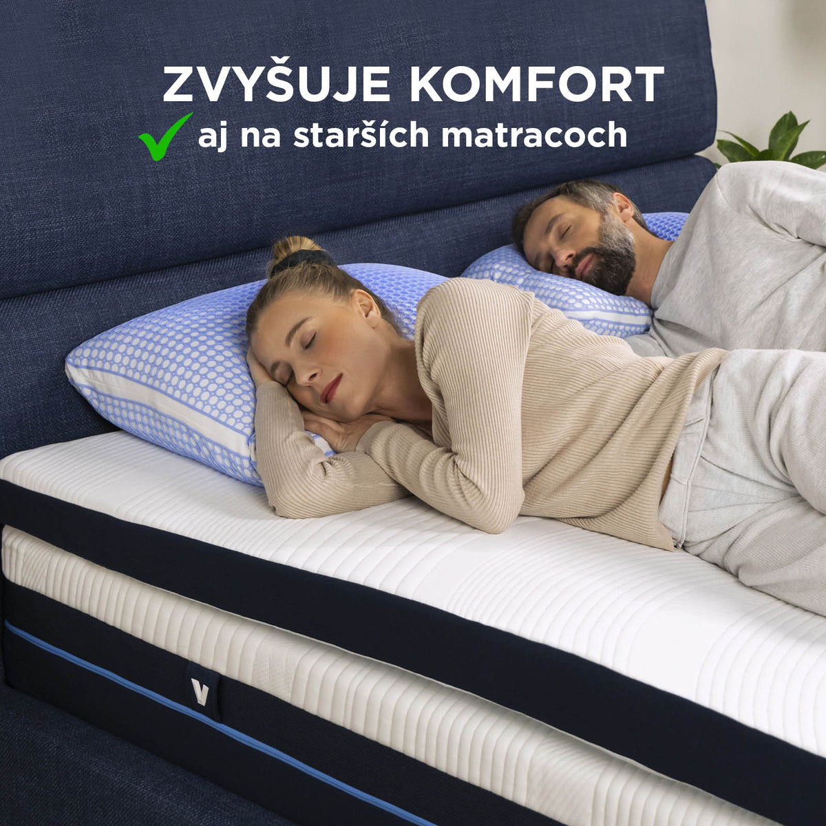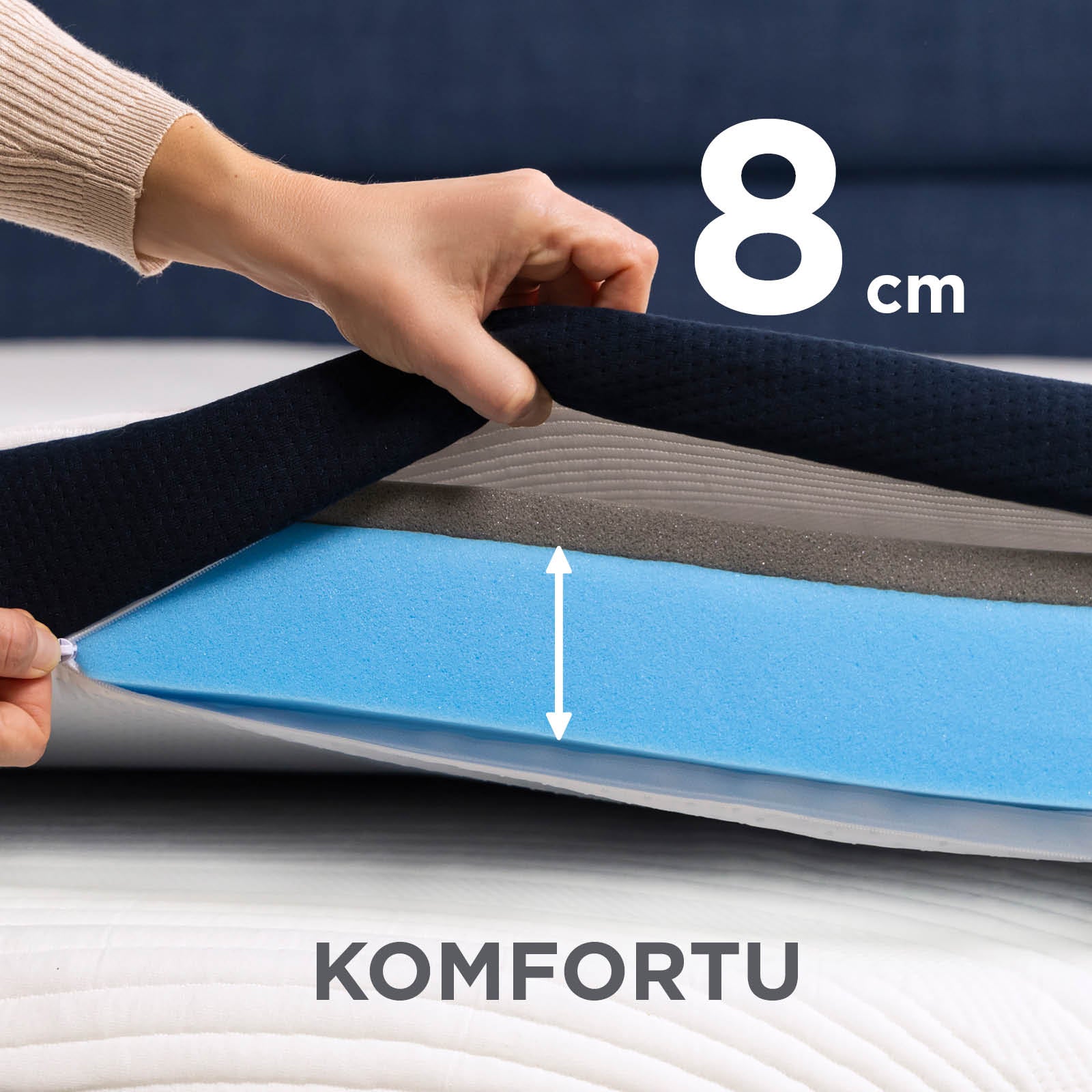 - 8 cm vysoký hybridný vrchný matrac poskytuje dokonalé pohodlie a priedušnosť na akomkoľvek povrchu a v akejkoľvek polohe počas spánku.