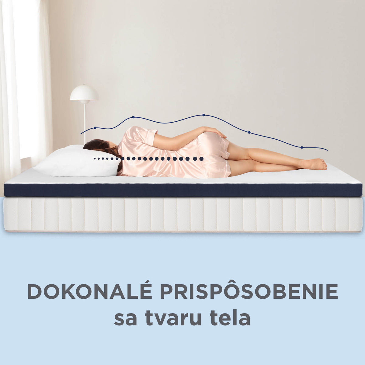 Mäkká pamäťová pena neustále reaguje na pohyby tela počas spánku a prispôsobuje sa mu, čím zaručuje pohodlie v akejkoľvek polohe spánku. Vaša chrbtica je vždy správne zarovnaná a pena zároveň znižuje tlak na povrch vrchného matraca. Ranné bolesti sa stanú minulosťou.