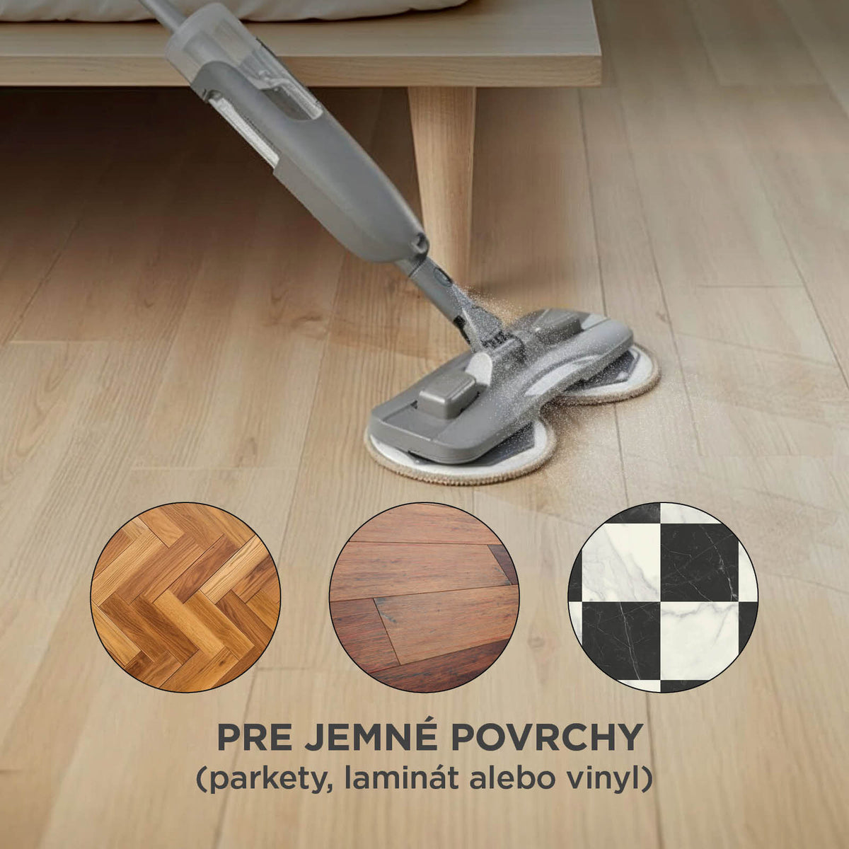 - Dôkladne vyčistí všetky druhy tvrdých podláh, od parkiet po vinyl a dlaždice.
