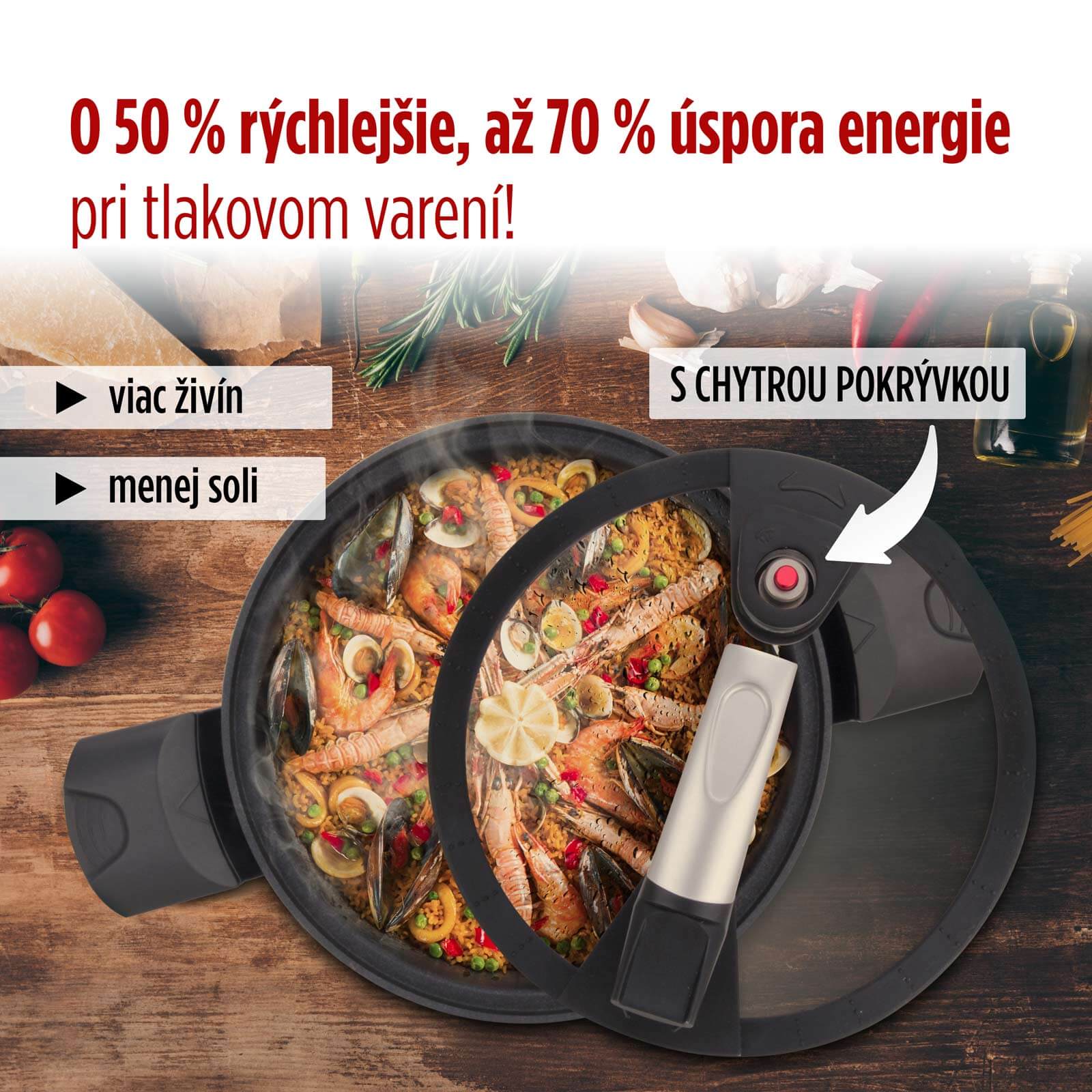 - Tlakové varenie skracuje dobu varenia o polovicu. Zároveň ušetrite až o 70% viac energie ako s bežnými hrncami.