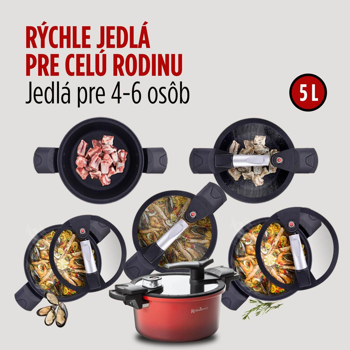 - Vďaka 5-litrovej kapacite pripravíte rodinné obedy v jednom hrnci.