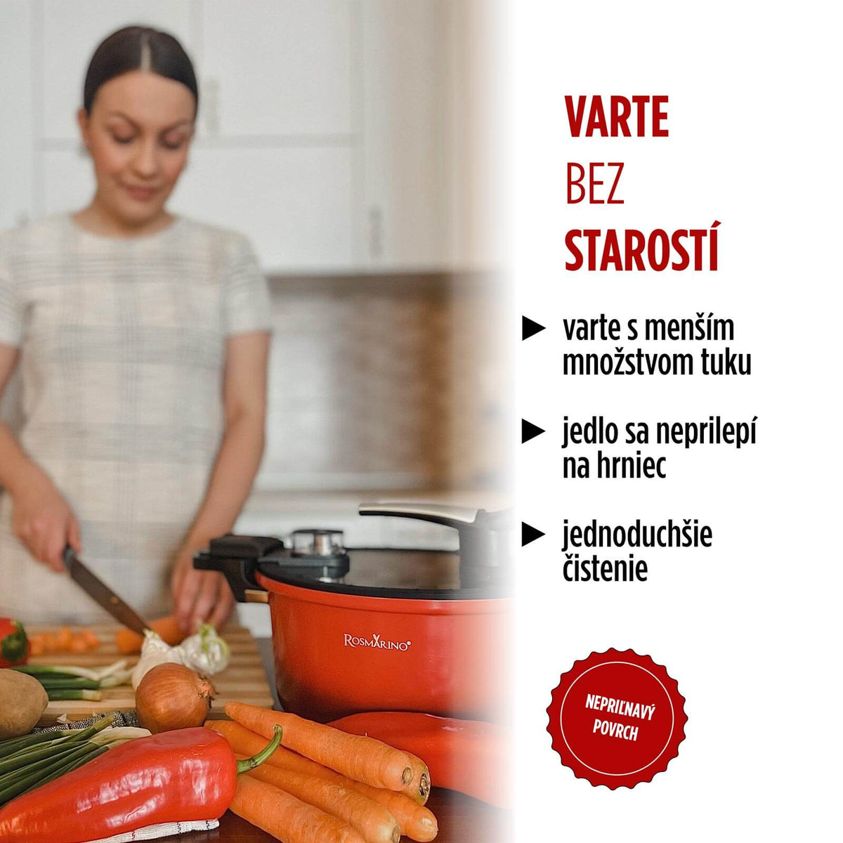 - Nelepivý povrch pre ľahšie varenie s menším množstvom tuku.
