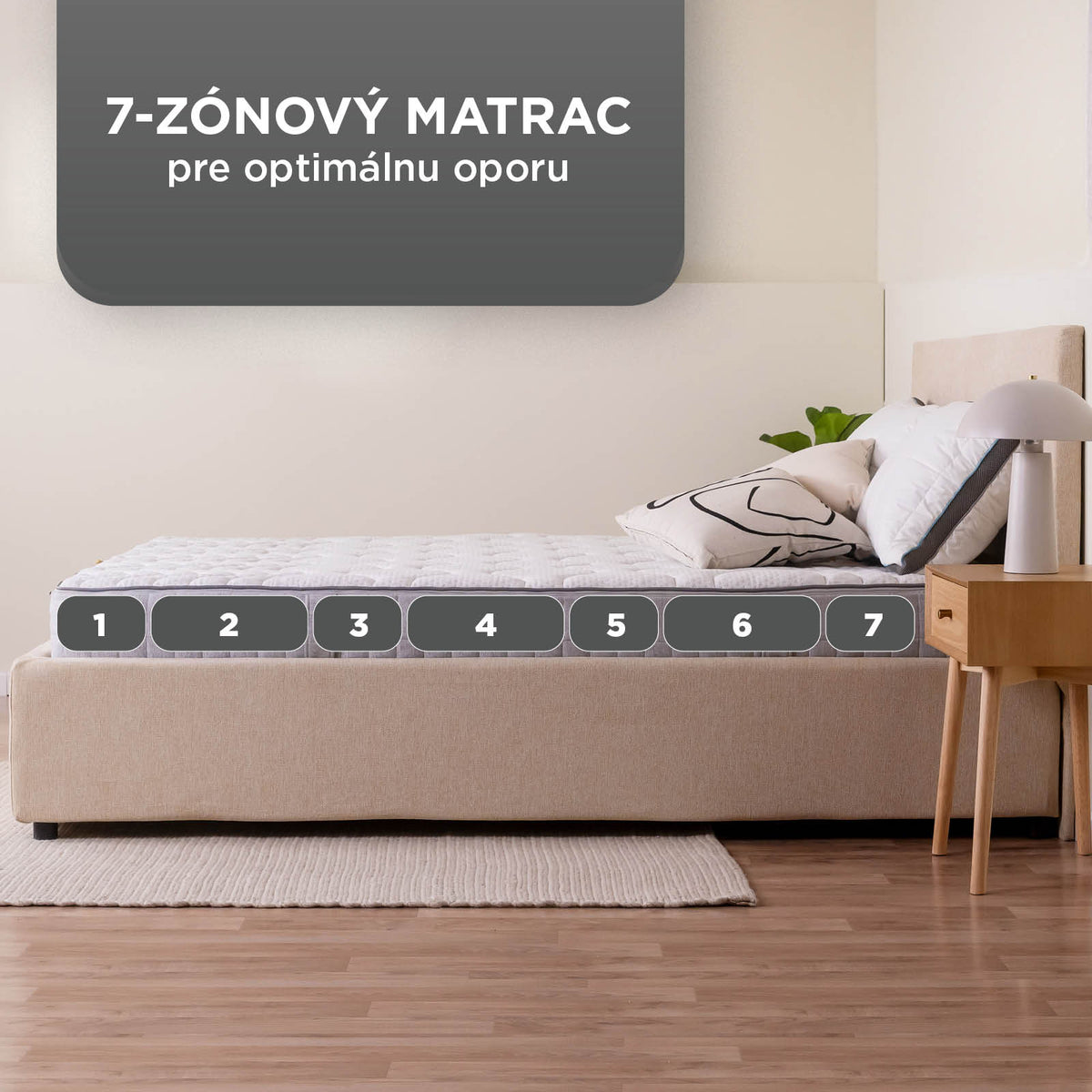 7 zón podporuje telo vo všetkých kontaktných bodoch s plochou na spanie.