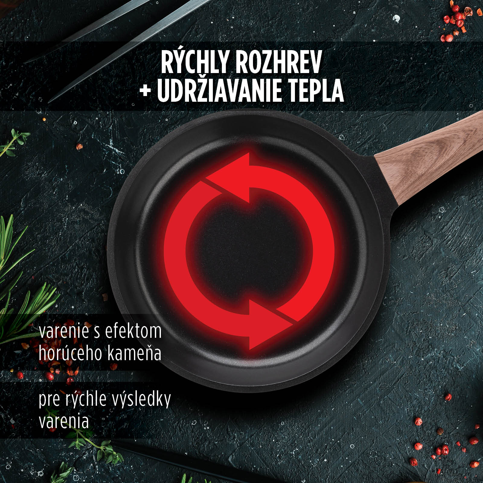 Špeciálne vyvinutá moderná technológia varenia sa spája s jedným z najstarších spôsobov prípravy jedla – na horúcom kameni. Vnútorný povrch riadu je potiahnutý hladkým minerálnym povrchom vyvinutým v Nemecku, ktorý umožňuje prirodzený spôsob varenia a pečenia. Vďaka jeho výnimočným vlastnostiam stačí pri varení len minimálne množstvo tuku a jedlo si zachováva všetky živiny, vitamíny a minerály. Na zachovanie kvality povrchu odporúčame používať drevené alebo silikónové kuchynské náčinie.