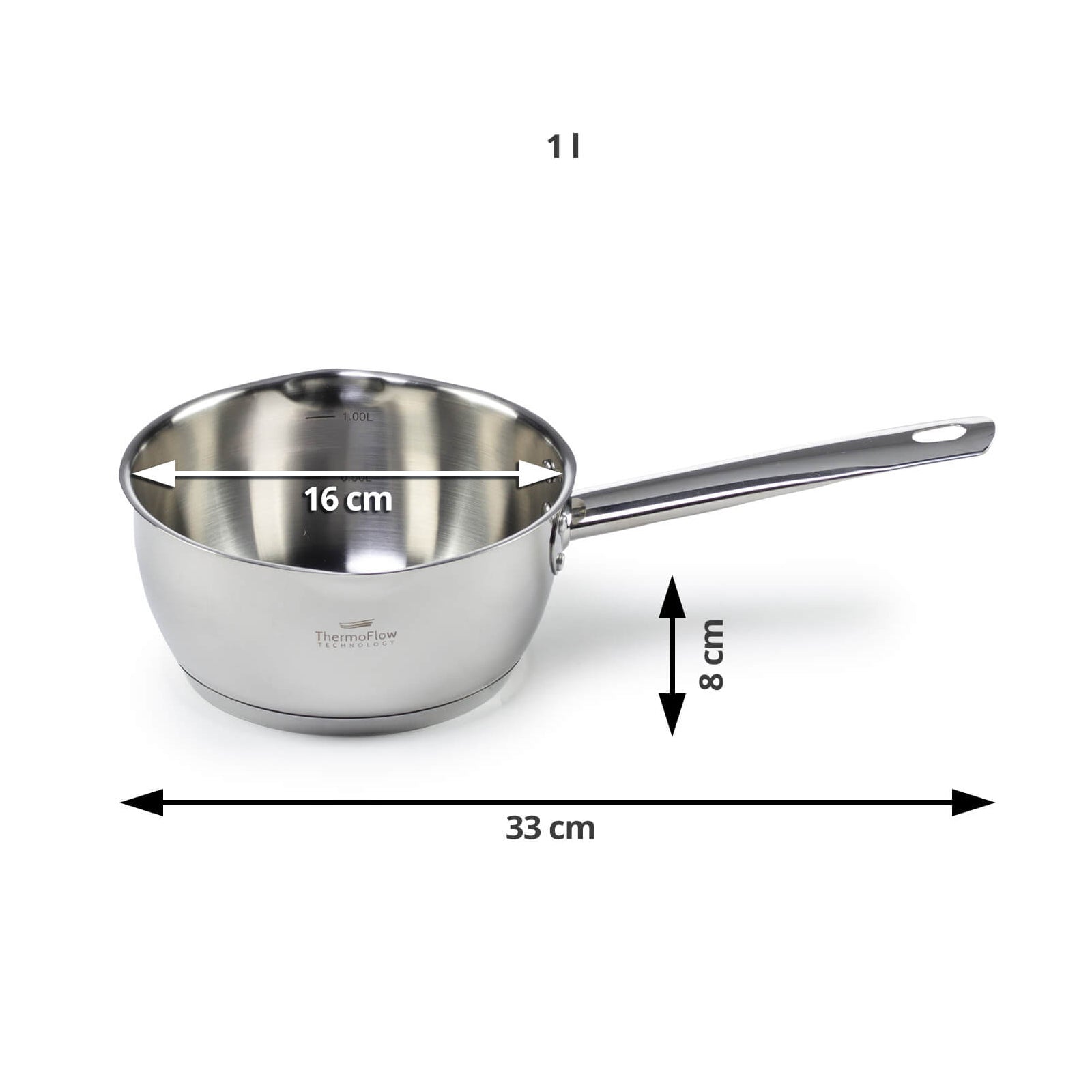 Nepostrádateľná univerzálna rajnica s pokrievkou uľahčuje a urýchľuje prípravu rôznych jedál, ktoré potešia začiatočníkov aj skúsených kuchárov. Vďaka jej univerzálnosti budete môcť pripravovať polievky, omáčky, je ideálna na ohrievanie vody alebo mlieka, varenie vajec alebo prípravu detskej stravy – to všetko v jednom hrnci!
