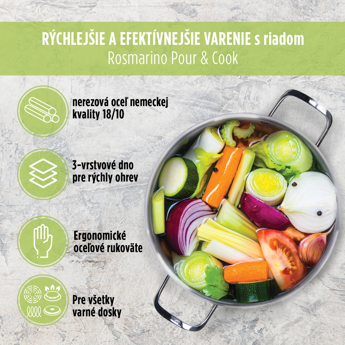 Rosmarino oceľový hrniec Pour&Cook II so sklenenou pokrievkou – 14 L, 28 cm