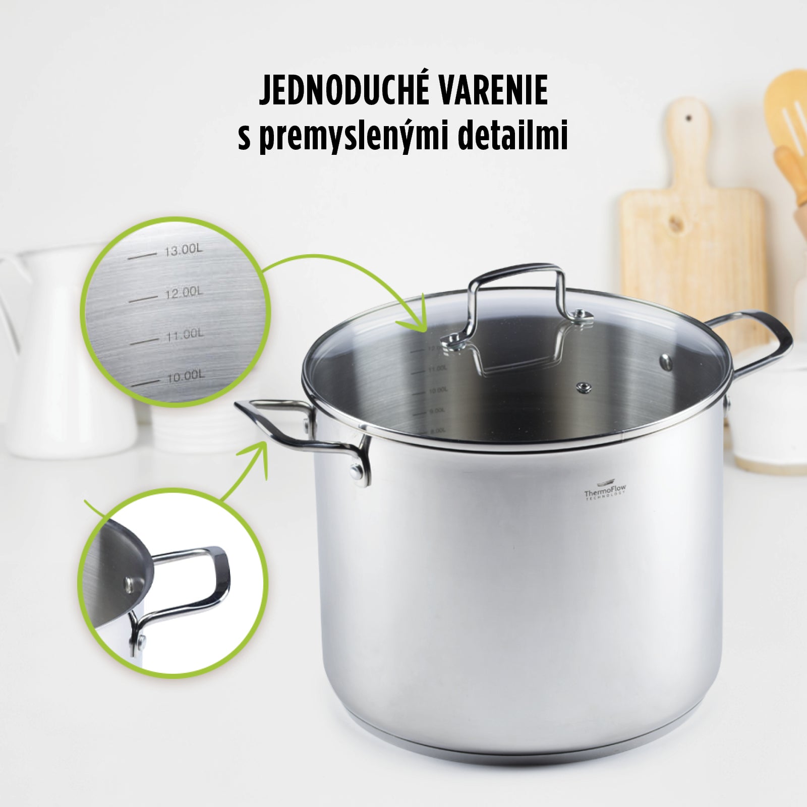 Trojvrstvové dno pre odolnosť a technológia ThermoFlow pre vynikajúcu distribúciu tepla.