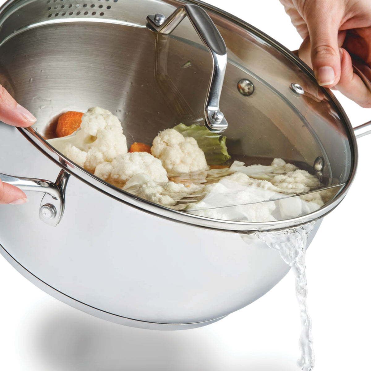 Na presné odmeranie množstva nepotrebujete špeciálnu odmerku, pretože odmerná stupnica je už vyrytá na vnútornej strane hrnca. Už žiadne vylievanie a špliechanie, pretože pokrievka má na oboch stranách odtokové otvory a zaoblené okraje, čo uľahčuje vylievanie bez toho, aby ste pokrievku museli dvíhať. Ergonomicky tvarované rukoväte z nehrdzavejúcej ocele sa vďaka dutej konštrukcii neprehrievajú a oceľové nity zaisťujú mimoriadnu pevnosť a odolnosť nádoby.