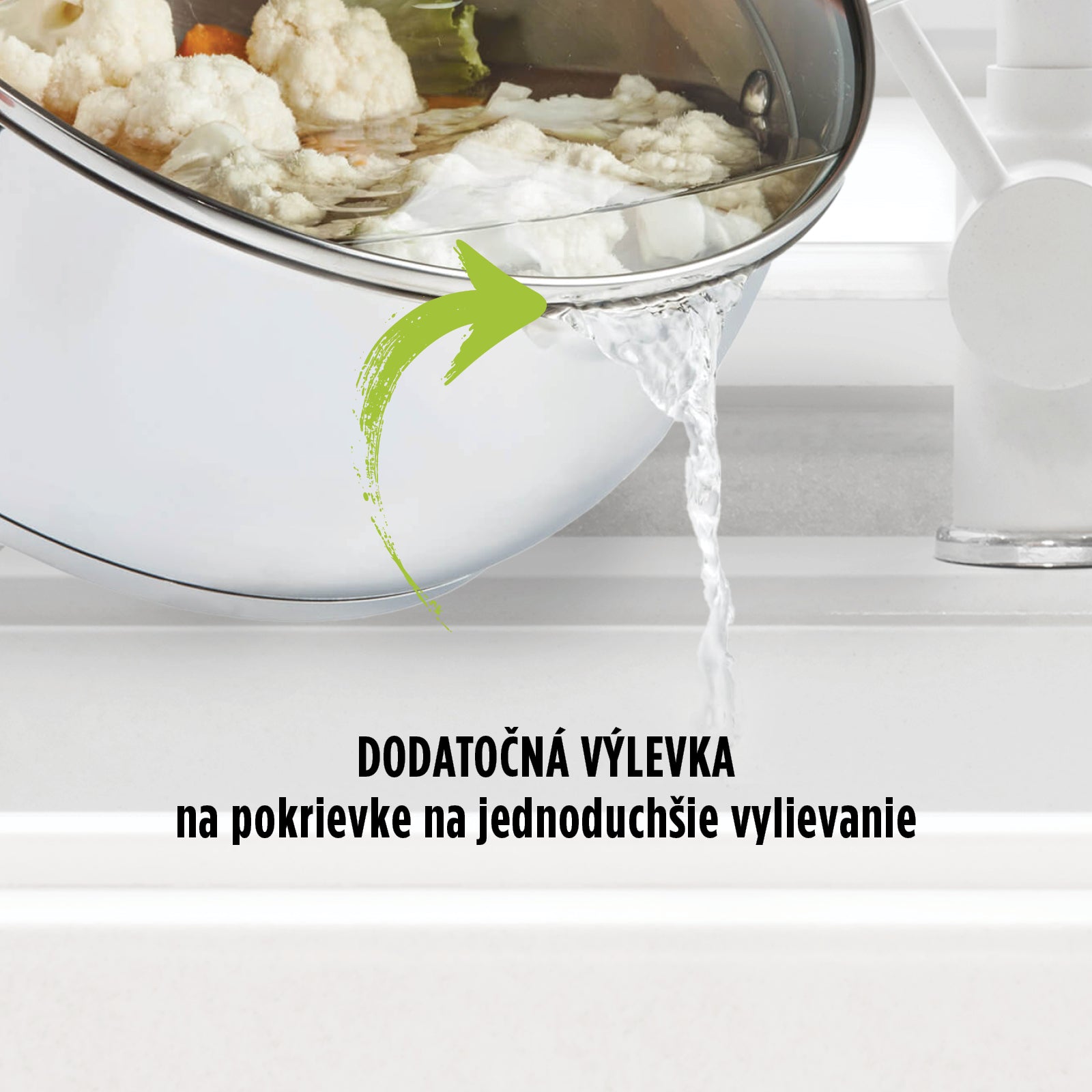- Meracia stupnica, špeciálne tvarovaný okraj hrnca spolu so špeciálnou pokrievkou a ergonomickou rukoväťou z nehrdzavejúcej ocele s dutým dizajnom sa starajú o vynikajúci zážitok z varenia.