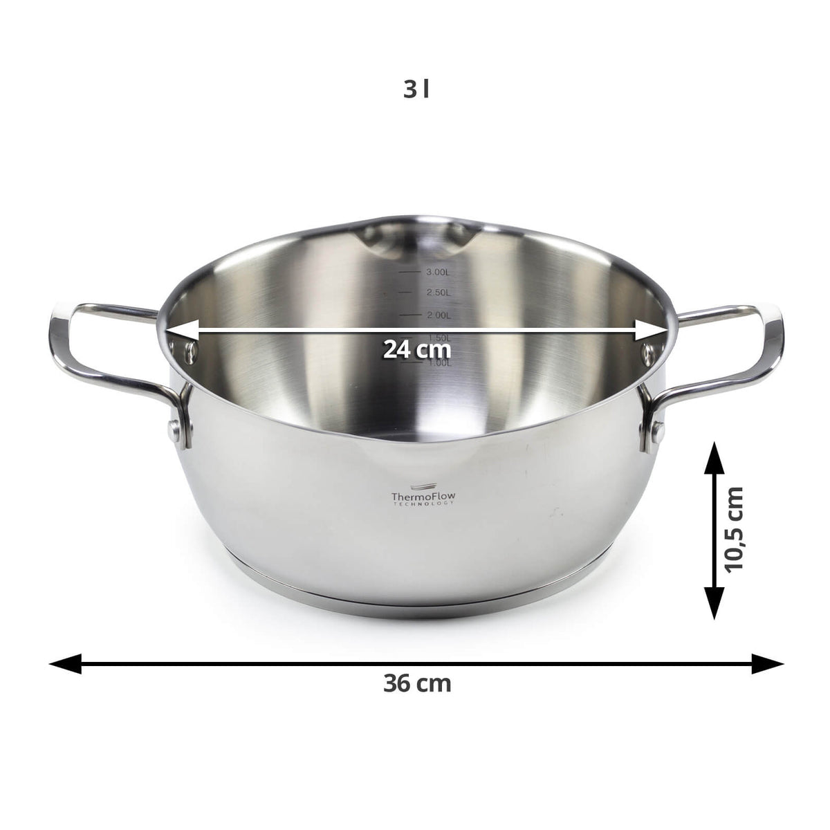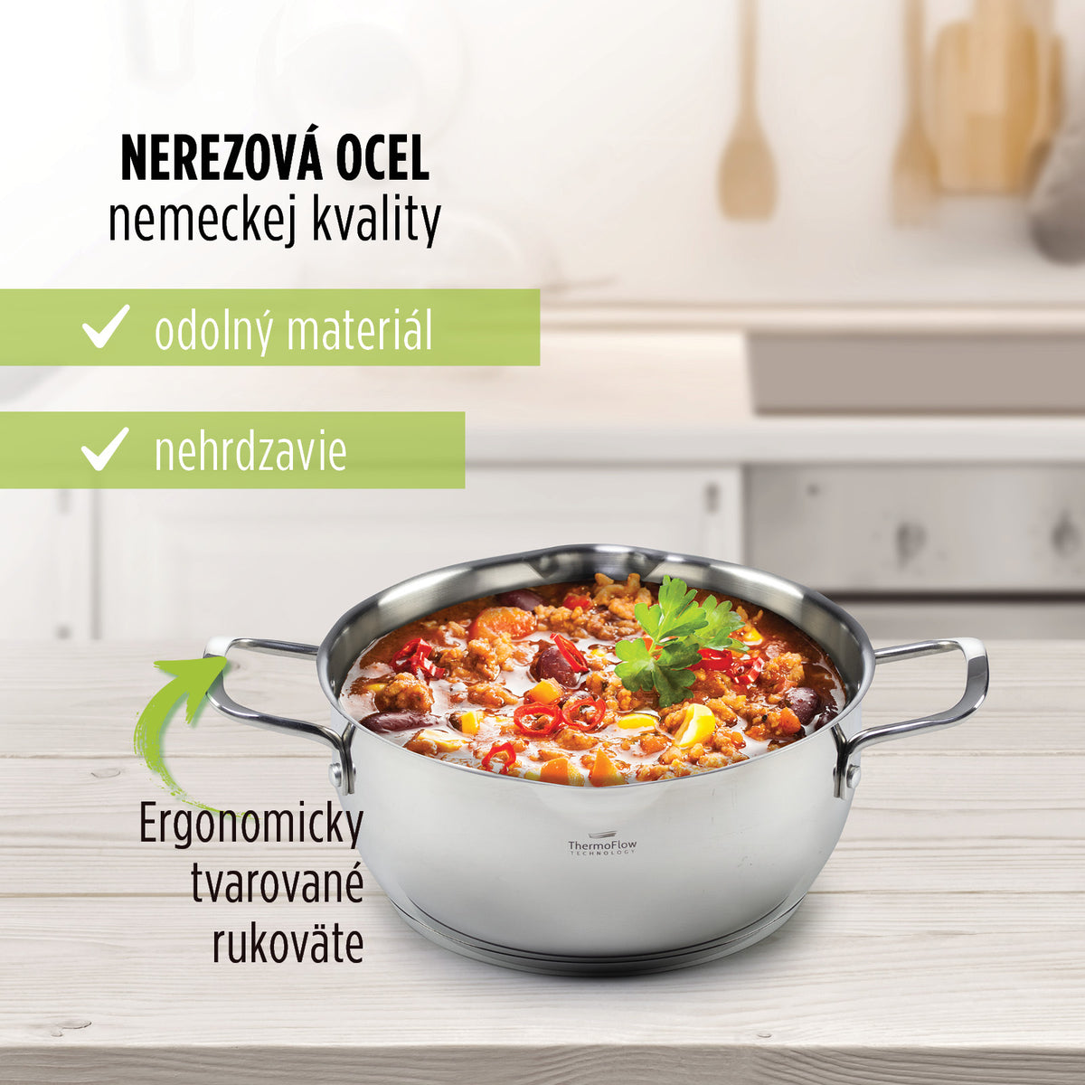 Trojvrstvové dno pre odolnosť a technológia ThermoFlow pre vynikajúcu distribúciu tepla.