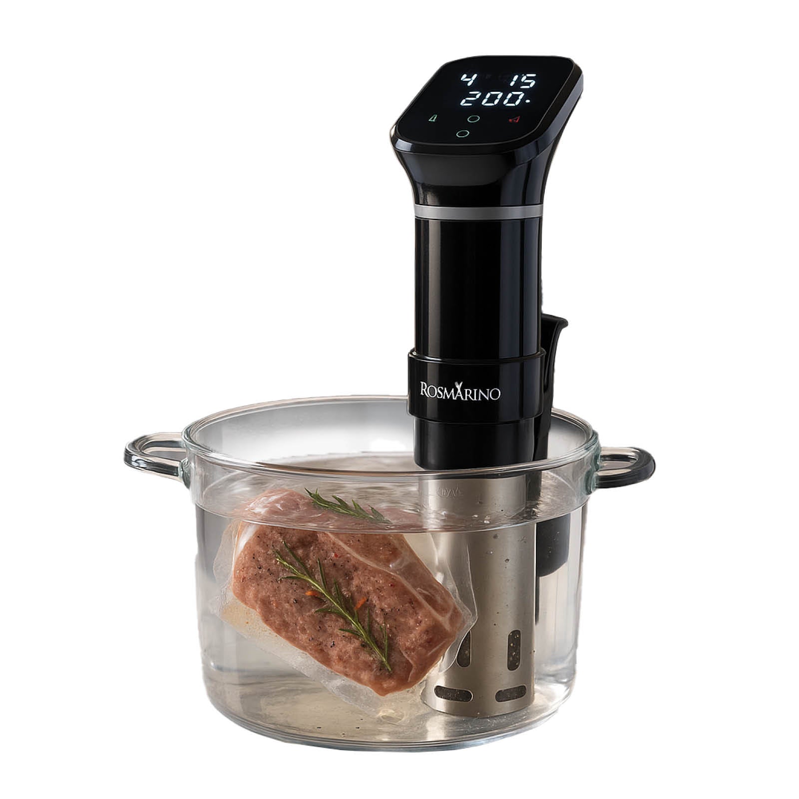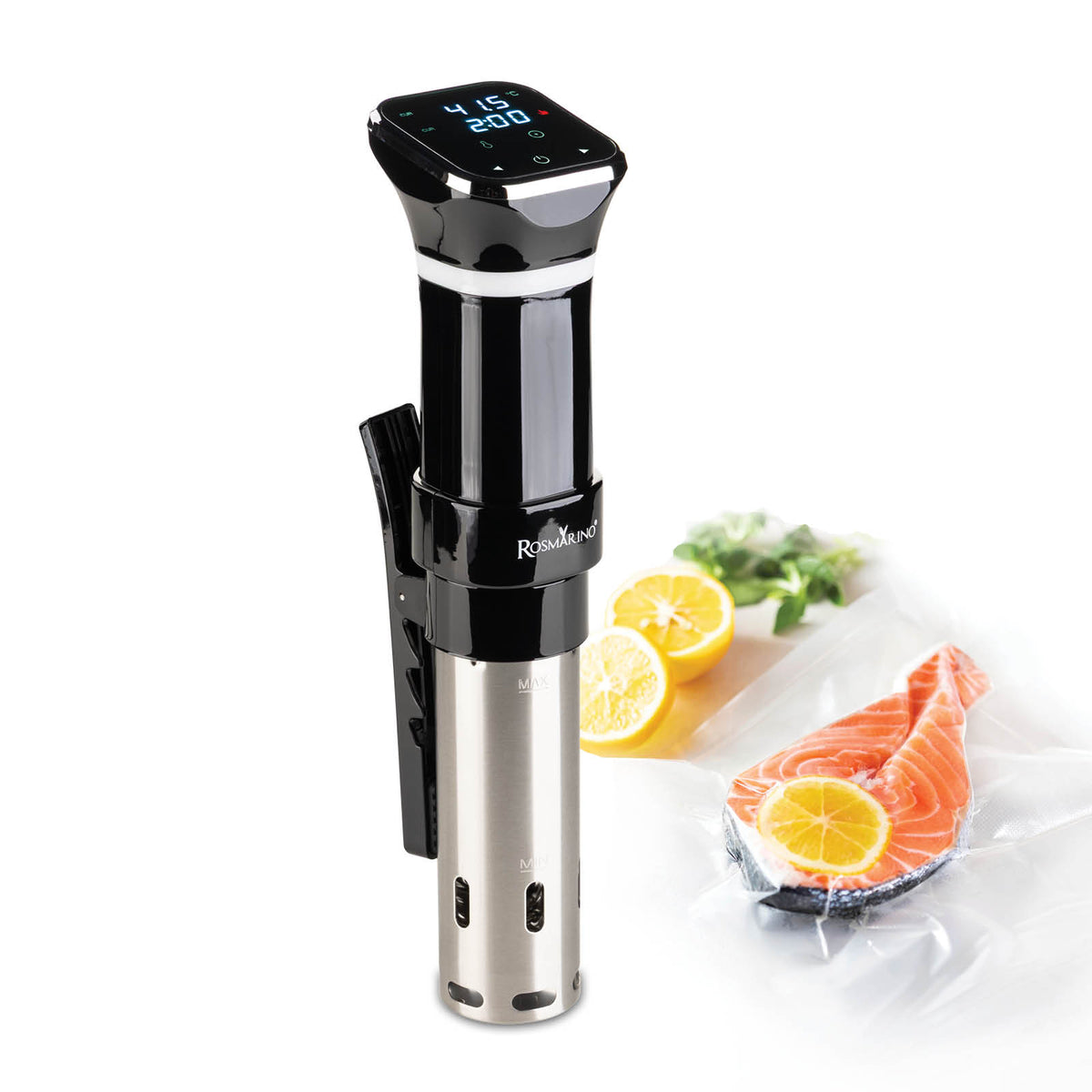 Varič sous vide Rosmarino udržiava teplotu s presnosťou 0,1 °C v rozsahu 25 – 95 °C. To umožňuje dokonalú kontrolu prepečenia – od dokonale ružového steaku až po jemne uvareného lososa. Príkon 1100 W zabezpečuje rýchly ohrev vody a stálu teplotu aj počas dlhého varenia.