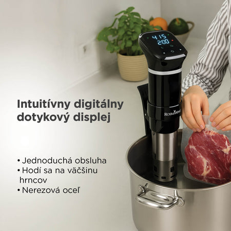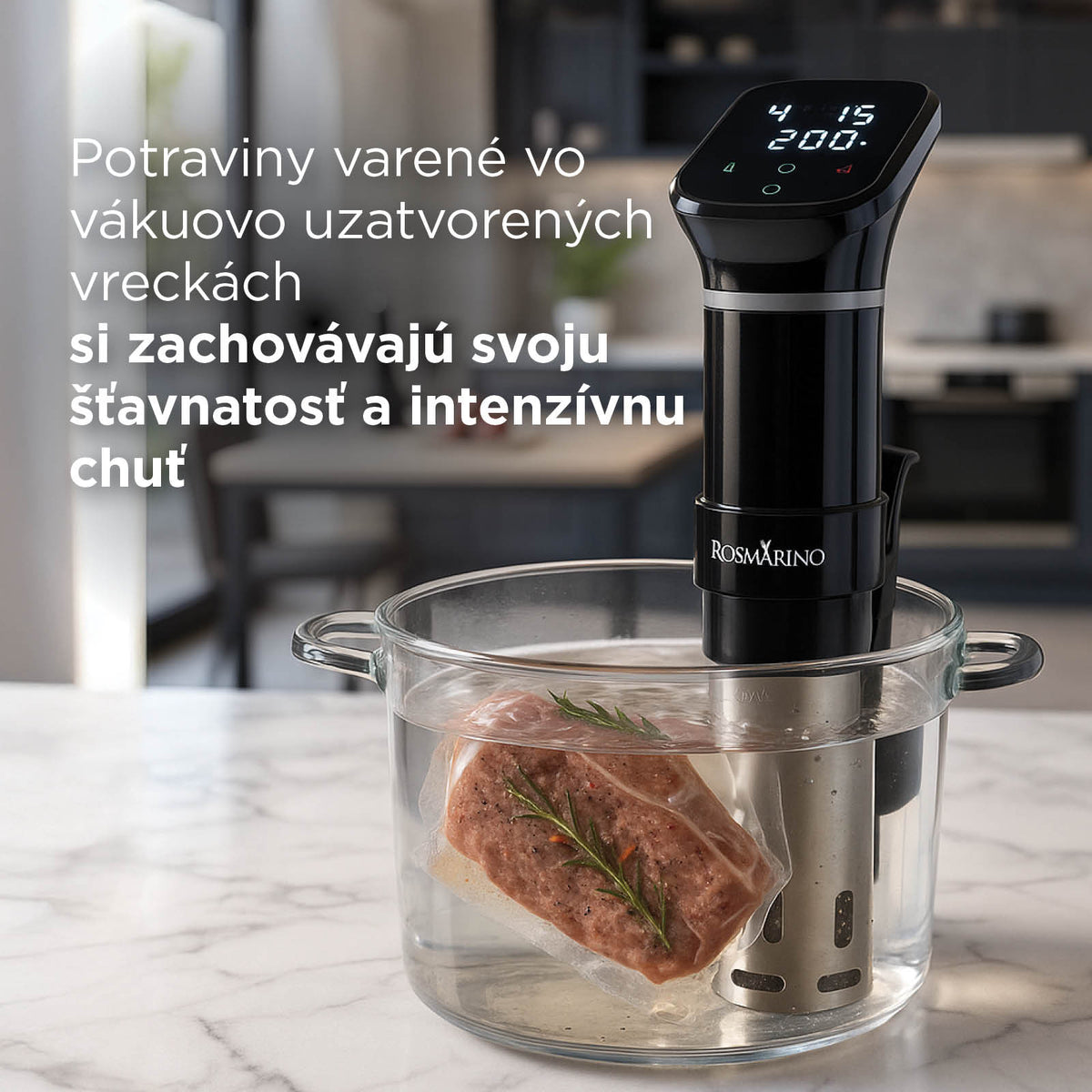 Jedli ste niekedy steak v špičkovej reštaurácii a premýšľali ste, ako dosiahnu takú dokonalú prepečenosť a šťavnatosť? Odpoveďou je sous vide – technika pomalého varenia vo vodnom kúpeli pri konštantnej teplote. Sous vide varič Rosmarino vám umožní dosiahnuť profesionálne výsledky bez stresu a dohadov. Vďaka presnej regulácii teploty a 1100 W výkonu na rýchly ohrev môžete pripraviť mäso, ryby alebo zeleninu presne podľa svojich predstáv – od ružového steaku až po jemne upečeného lososa. Potraviny si zachovajú maximálnu chuť, šťavnatosť a živiny, pretože sa varia vo vlastných šťavách. Stačí vákuovo uzavrieť suroviny, ponoriť ich do vodného kúpeľa a nechať zariadenie urobiť zvyšok. Ideálna voľba pre každého, kto chce od varenia viac – bez zložitých postupov.