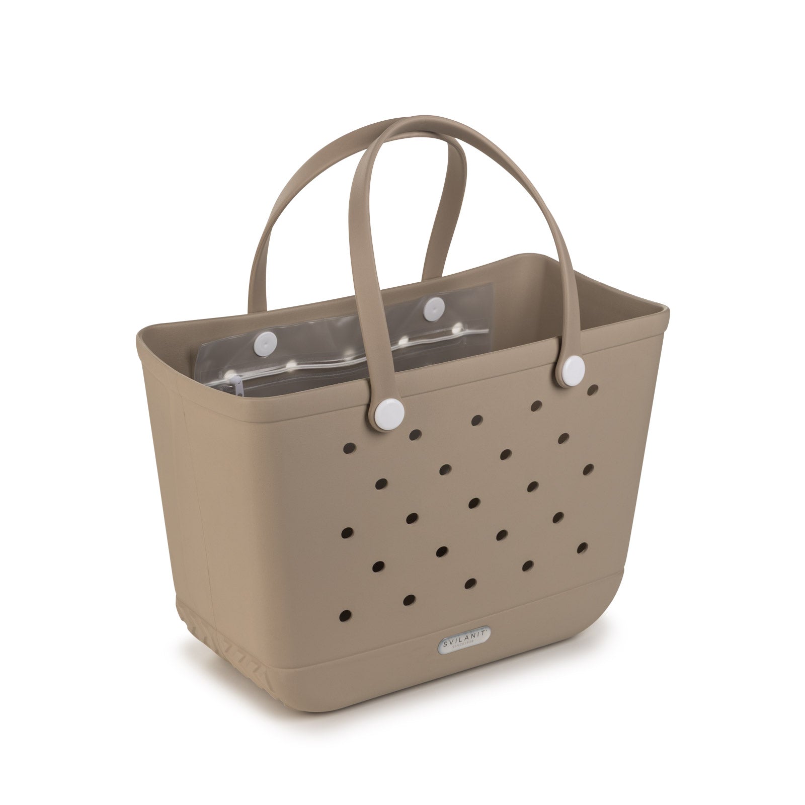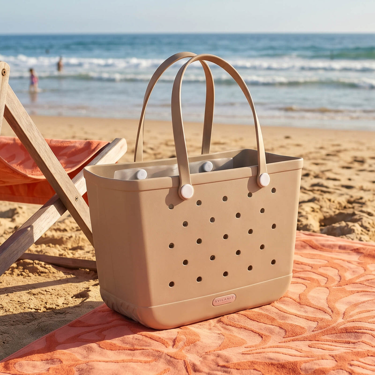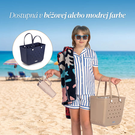 Všestranná, 100 % nepremokavá plážová taška Svilanit Evie z odolnej EVA peny ponúka veľa miesta na uteráky, knihy a občerstvenie.