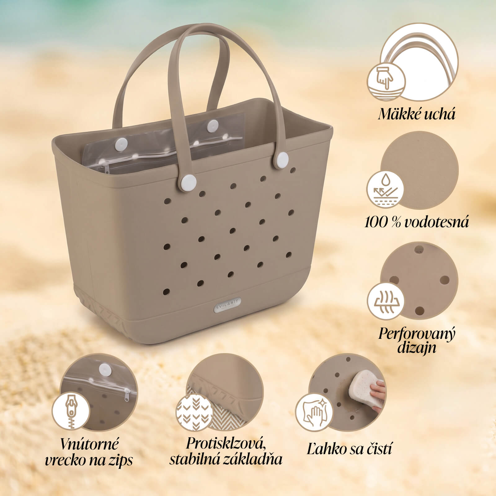 - Perforovaný dizajn – už žiadny piesok a vlhkosť v taške