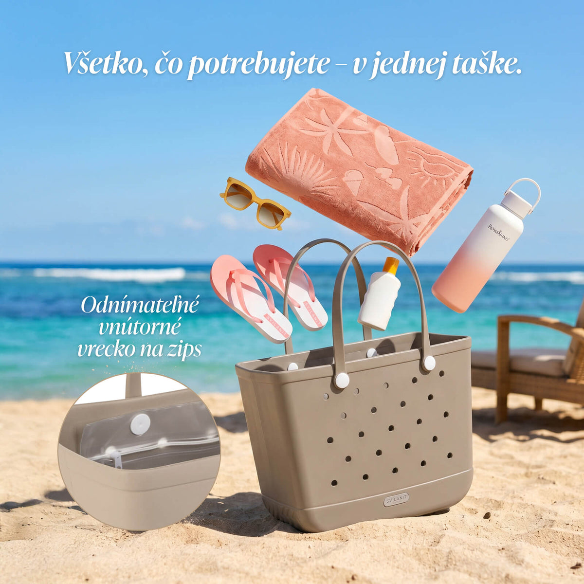 - Priestranná taška s množstvom miesta na všetky vaše letné nevyhnutnosti