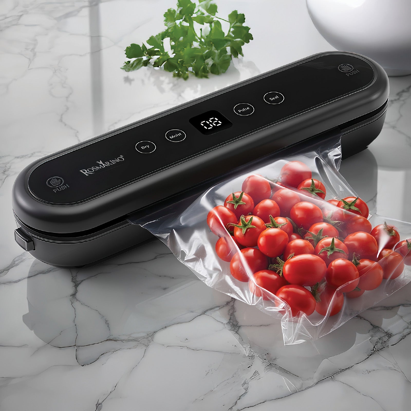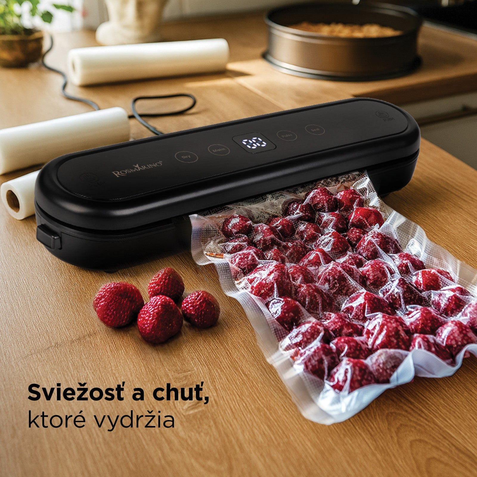 Vákuovanie uchováva potraviny čerstvé dlhšie, pretože zabraňuje oxidácii a množeniu baktérií. Znamená to menej odpadu a väčšiu úsporu. Prístroj Rosmarino poskytuje profesionálne hermetické uzatváranie, ktoré zabraňuje vniknutiu vzduchu aj po mesiacoch skladovania.