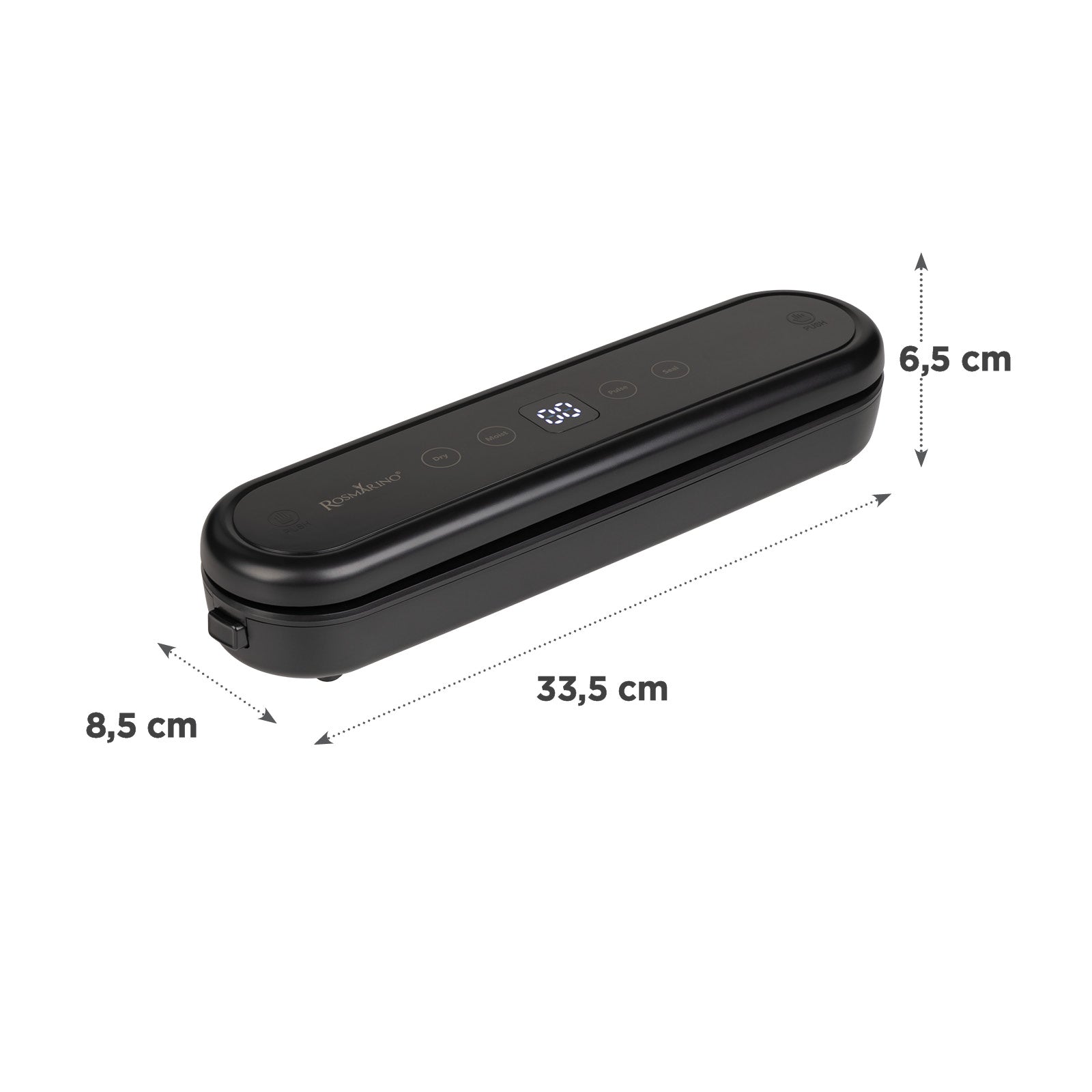 Už máte dosť toho, že sa vám potraviny kazia príliš rýchlo a zbytočne míňate peniaze? Uchovajte potraviny čerstvé až 5-krát dlhšie – bez konzervantov a objemných plastových nádob. S vákuovačkou Rosmarino hermeticky uzavriete suché aj vlhké potraviny za pár sekúnd, pripravíte mäso alebo zeleninu na sous vide varenie, alebo si nachystáte jedlo a sezónne produkty na zmrazenie. Prístroj pracuje rýchlo a potichu a používa sa tak jednoducho, že ho zvládnu ovládať aj deti. Vďaka kompaktnému a tenkému dizajnu nezaberá veľa miesta a je kompatibilný so všetkými štandardnými vákuovacími vreckami so šírkou do 25 cm. Súčasťou balenia je aj 10 vreciek v dvoch veľkostiach, aby ste mohli vákuovačku ihneď začať používať.