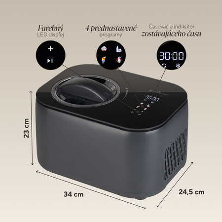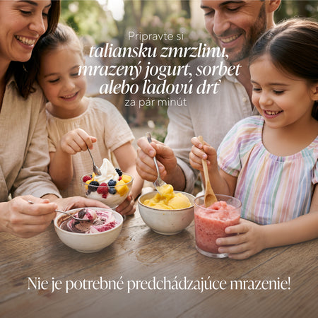 - 4 prednastavené programy – talianske gelato, sorbet, mrazený jogurt, ľadová triešť