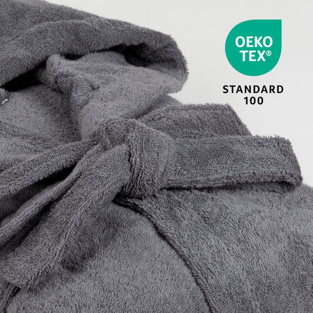 Župan Infinity je vyrobený zo 100 % bavlny a má certifikát OEKO-TEX, ktorý zaručuje, že látka neobsahuje škodlivé látky. Po kúpeli alebo plávaní sa môžete bez obáv zabaliť do tohto župana bez rizika podráždenia pokožky.