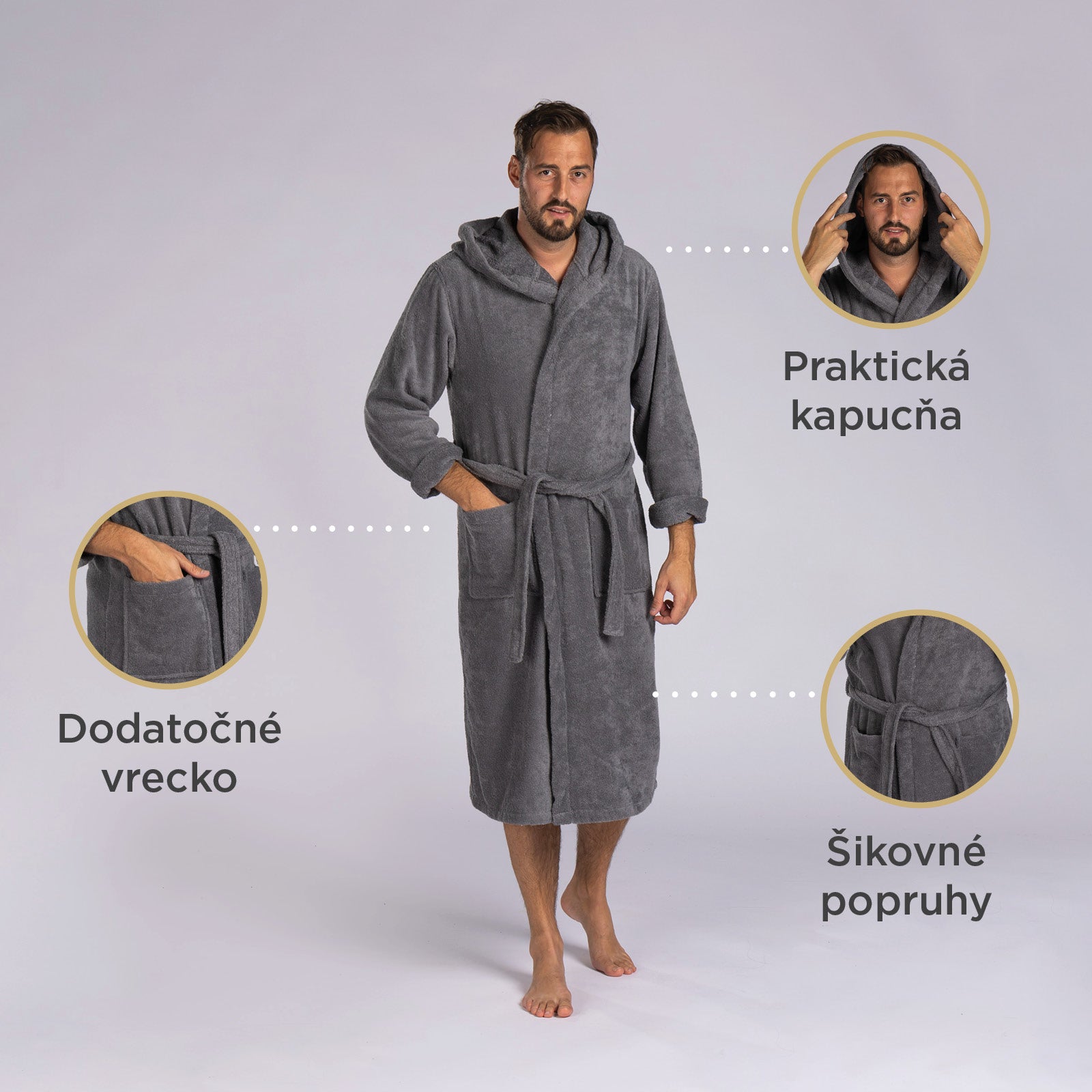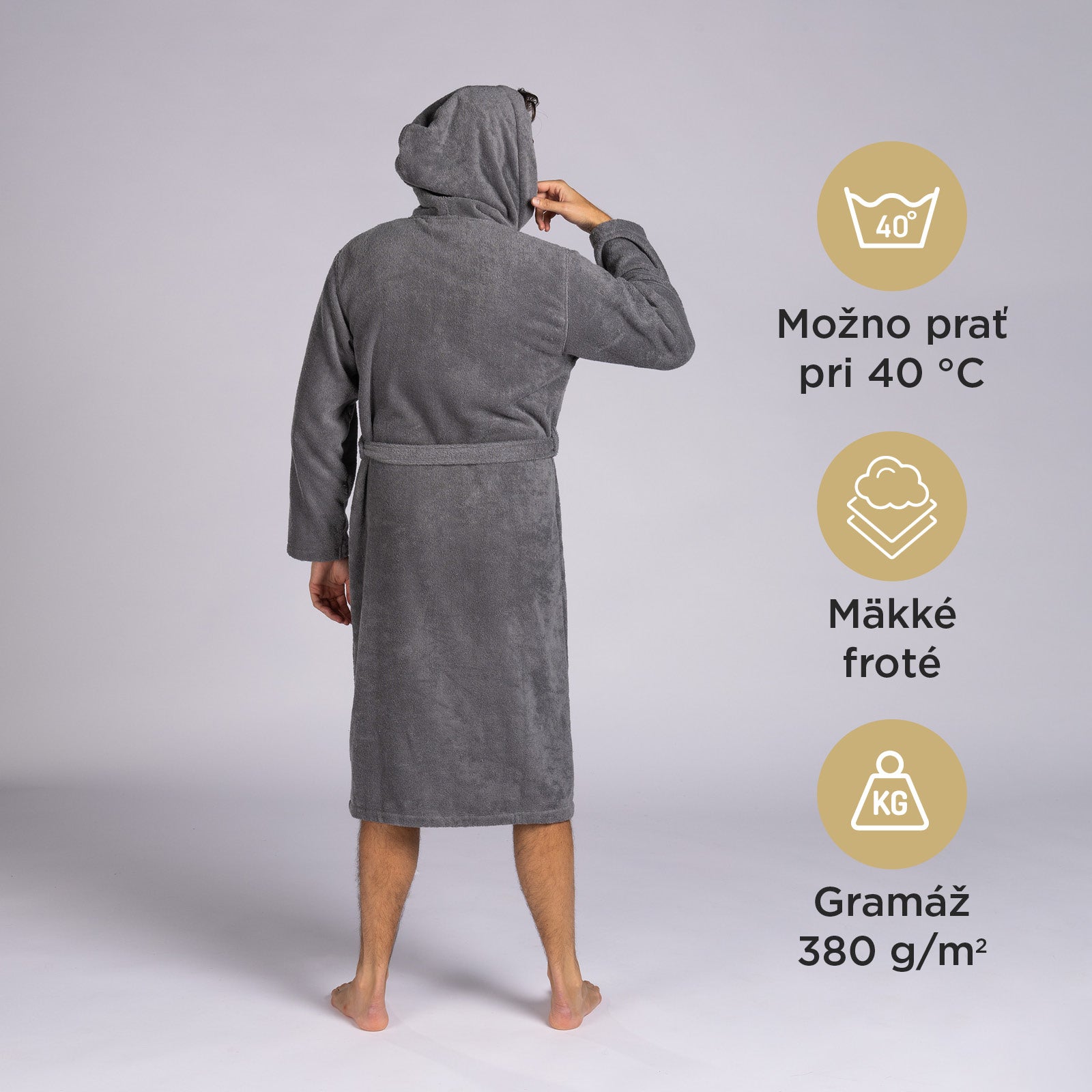 - Elegantný župan vyrobený zo 100 % bavlny.