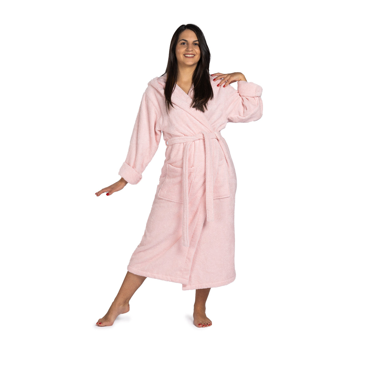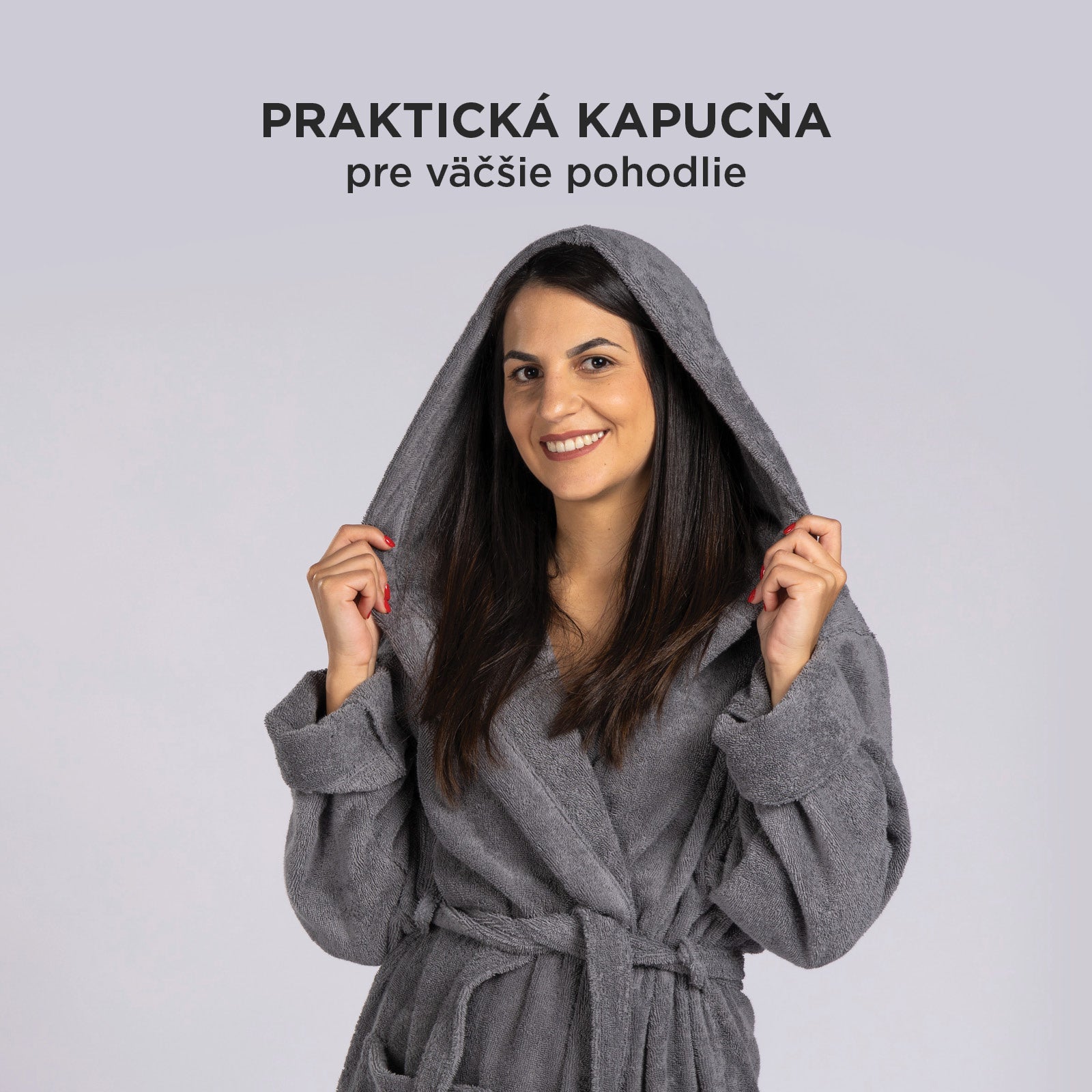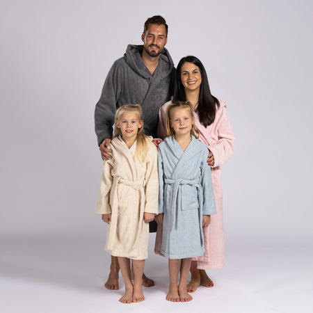 Župan má praktickú kapucňu, ktorá zakryje mokré vlasy a ochráni ich pred chladom. Dve veľké našité vrecká sú ideálne na ohriatie rúk alebo uloženie drobných nevyhnutností, ktoré potrebujete mať vždy poruke.